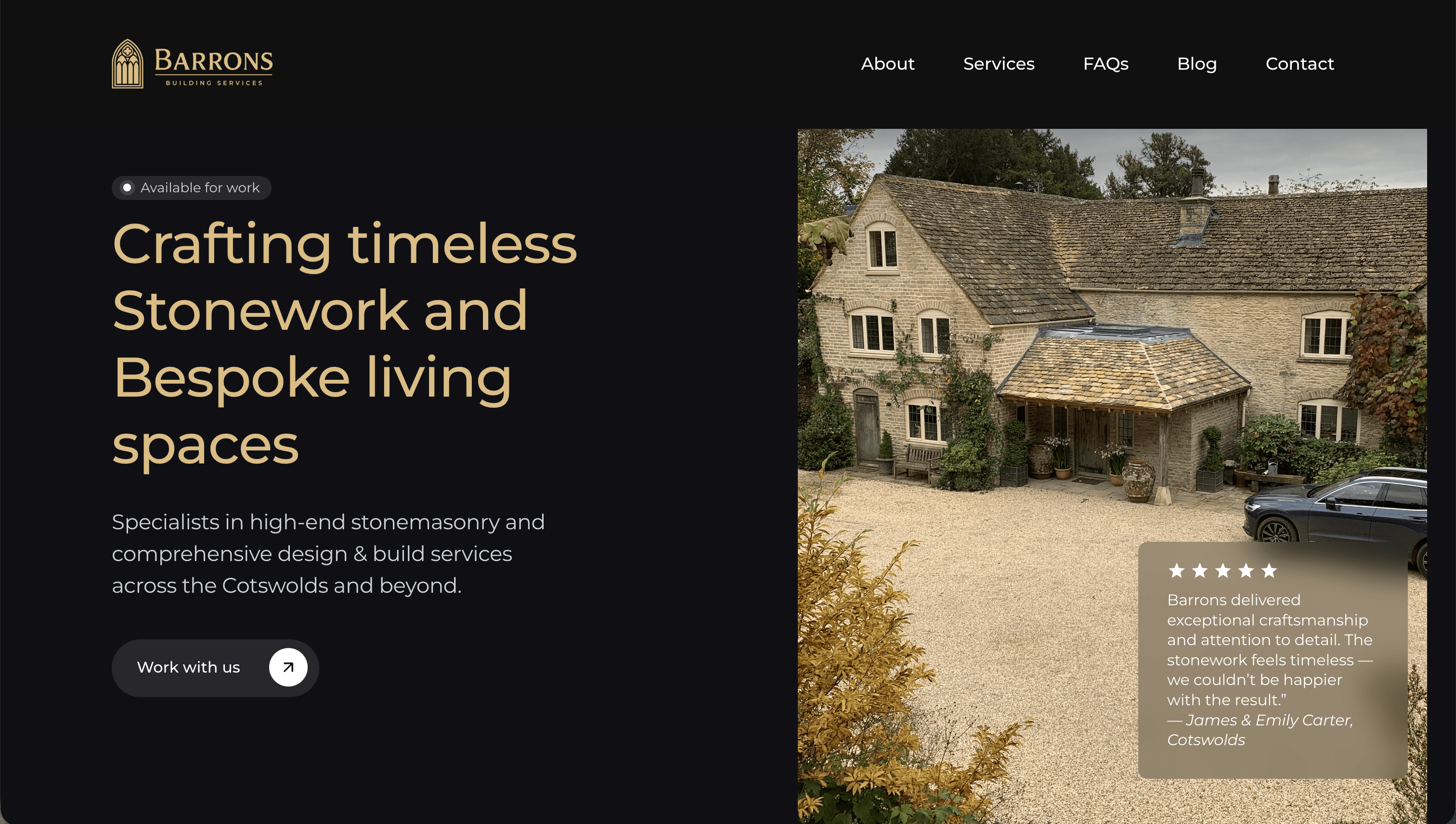 A clean, professional website for a premium building contractor. Showcasing high-quality workmanship with a portfolio-focused design that attracts higher-end clients and communicates expertise at first glance.