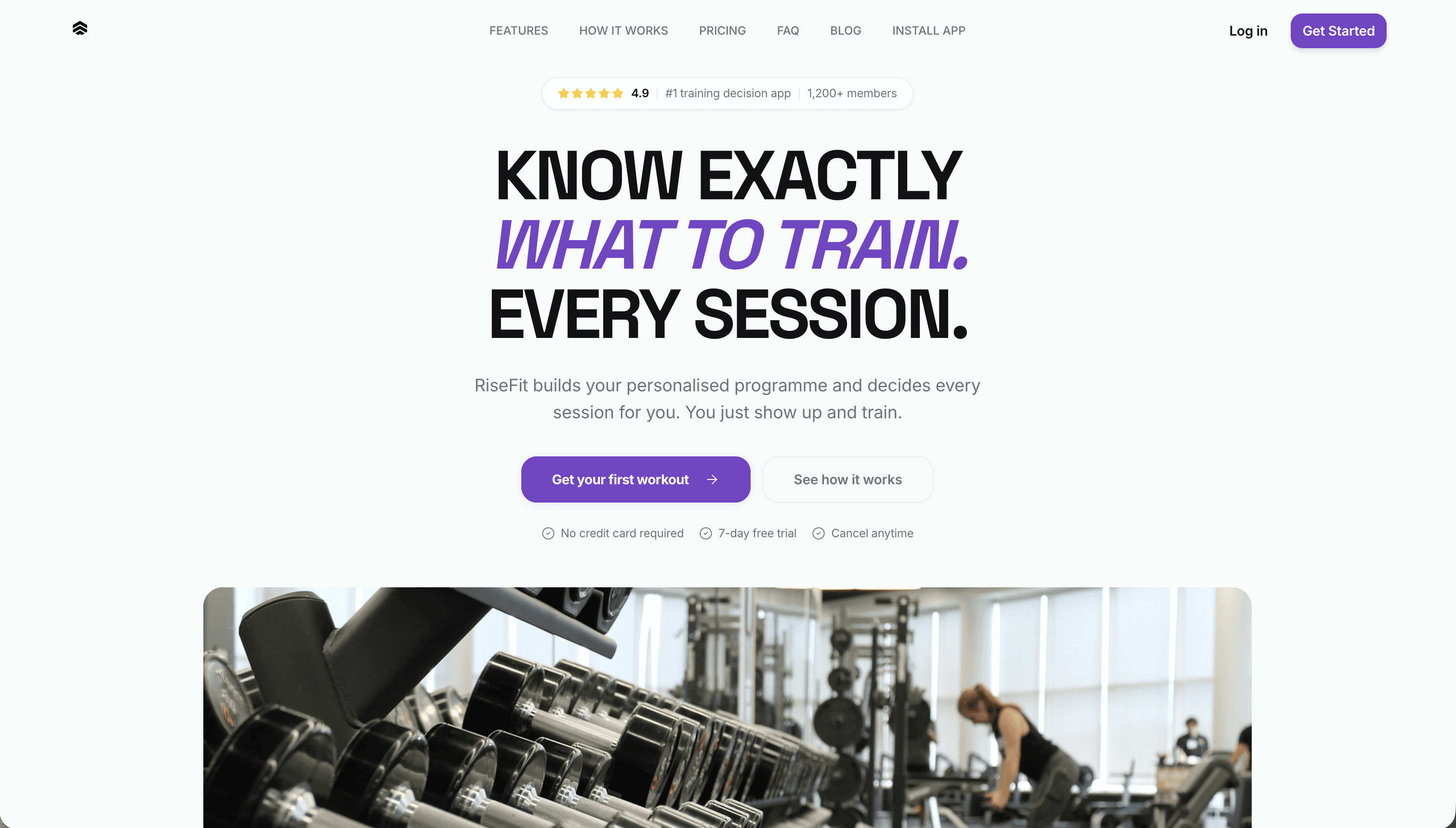 Fitness platform with website and mobile app. Modern design focused on sustainable habits and intuitive progress tracking.