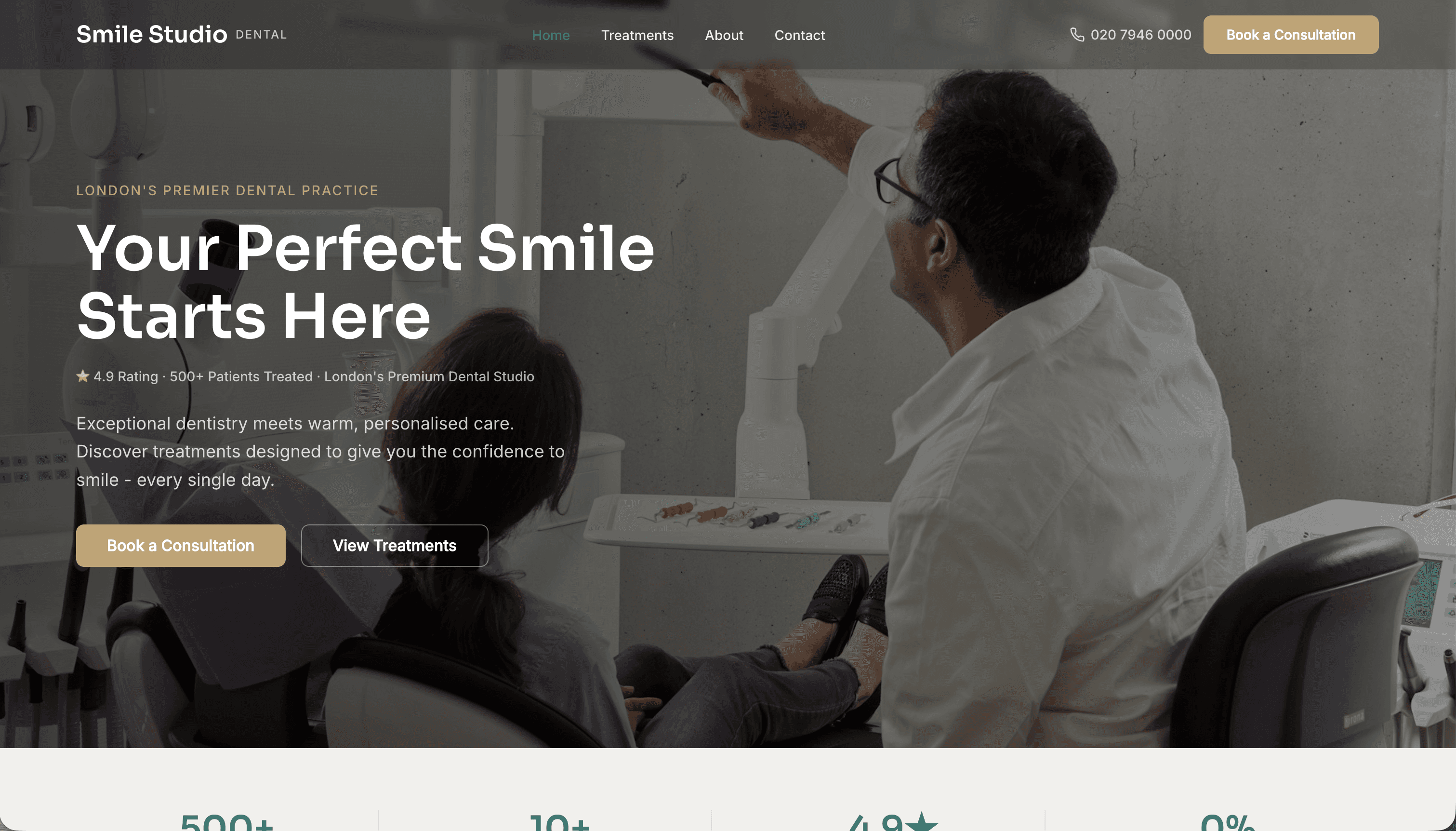 Professional dental practice website built to attract new patients and showcase services. Clean, welcoming design with easy appointment booking and clear service information.